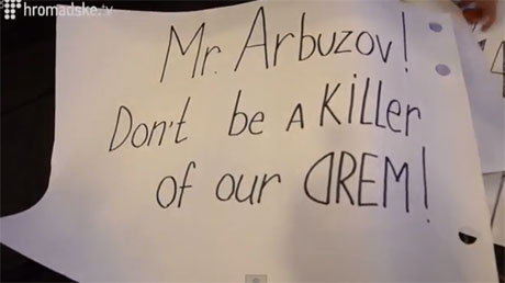 Разом з тим одразу після початку виступу Арбузова людей із плакатами вивели із залу, - повідомляє Українська правда.