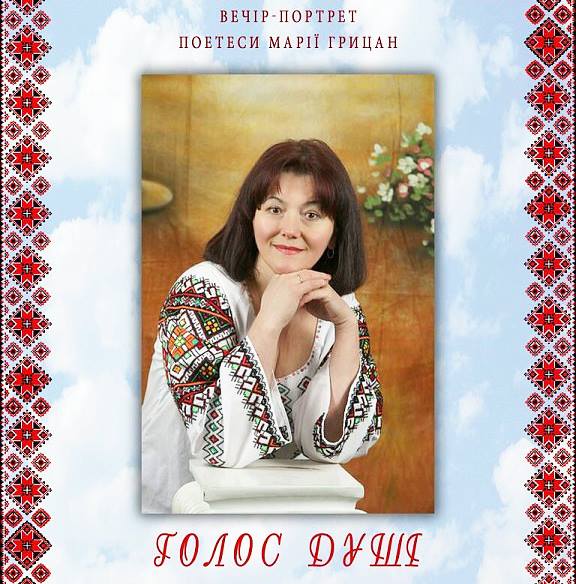 "Запрошую вас на творчий вечір талановитої поетеси, викладача Краснянської ЗОШ на Тячівщині, Марії ГРИЦАН", - йдеться у повідомленні.