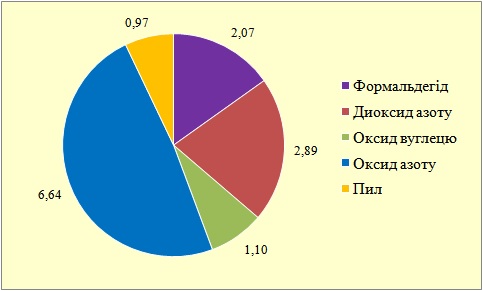 Порівняння середньої за місяць концентрації забруднюючих речовин із гранично допустимою середньодобовою концентрацією показало підвищений рівень забруднення формальдегідом ( (2,89 ГДКс.д.) та оксидом вуглецю (1,11 ГДК с. д.).
