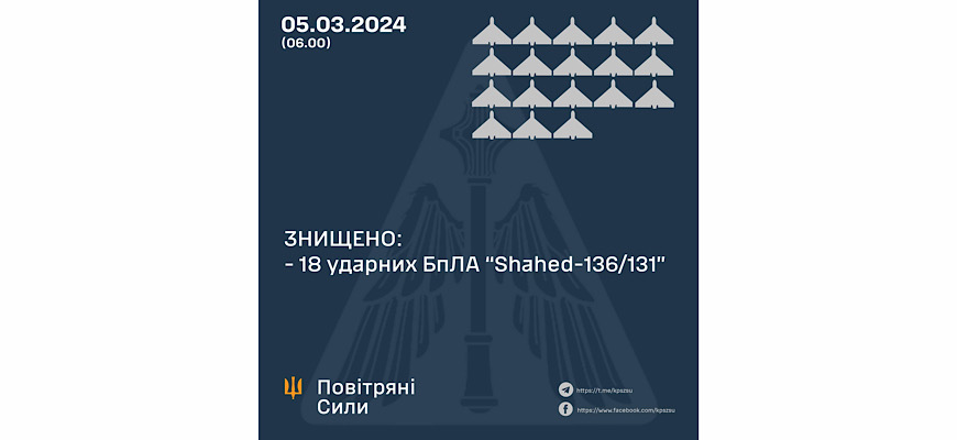 У ніч на 5 березня 2024 року противник атакував 22-ма ударними безпілотниками типу «Shahed» – райони пусків Балаклава – Крим.