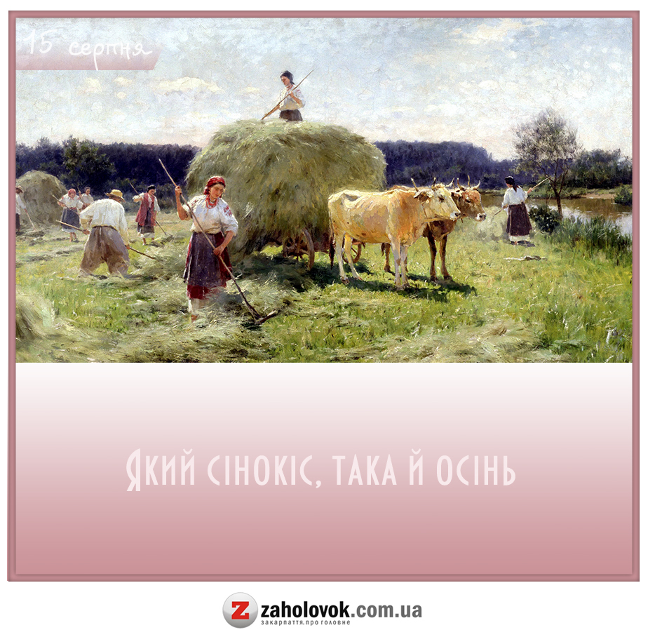 15 серпня селянам слід було завершити всі роботи, пов'язані з сінокосом. Відростала трава, яка раніше була скошена, а тому, потрібно було її прибрати.