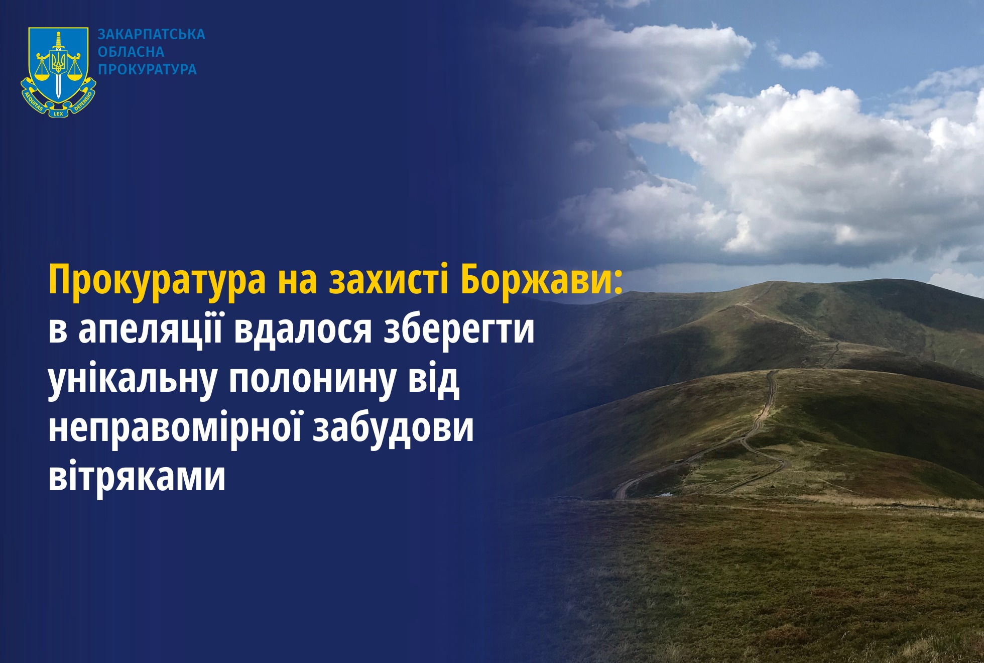 Західний апеляційний господарський суд завершив розгляд скарги Закарпатської обласної прокуратури щодо земельних ділянок на полонині Боржава та прийняв рішення на користь прокурорів і громадськості – задовольнив усі позовні вимоги.