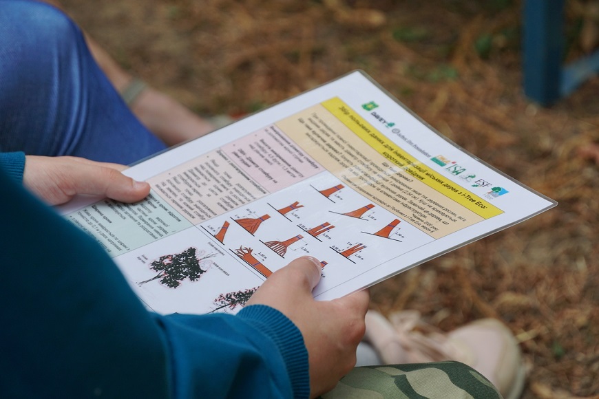 Інструктор Денис Триліс із Києва, представник організації-партнера проєкту «Зелена Хвиля», розповів волонтерам, як правильно оцінювати дерева. Зокрема, фіксували їх за низкою параметрів: діаметр, загальна висота, висота стовбура, висота, ширина і стан крони та її освітленість.