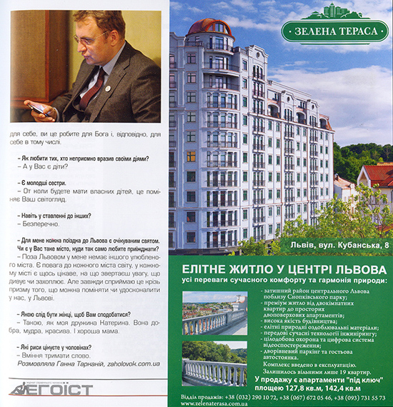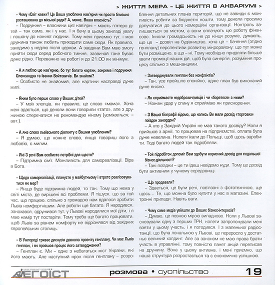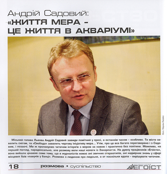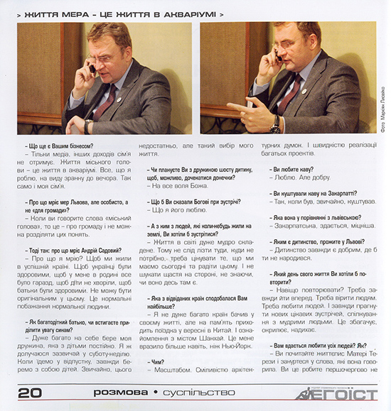 Текст "Ранкової кави" із мером Львова Андрієм Садовим, опублікуваний у традиційній рубриці сайту Zaholovok.com.ua, передрукував відомий львівський журнал "Егоїст" - перший україномовний чоловічий журнал.