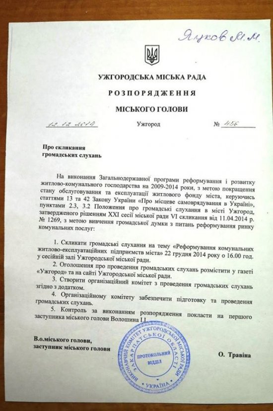 В Ужгороді у понеділок, 22 грудня, відбудуться громадські слухання на тему "Реформування ринку комунальних послуг міста".