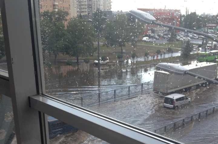 Хоч дощ тривав і не довго, але встиг перетворити деякі вулиці на ріки, паралізувати рух транспорту і розігнати людей. Як пишуть користувачі у пабліку ВКонтакте Харьков City, у підземному переході на виході зі станції метро "Спортивна" збирається все більше і більше людей.