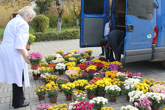 В Ужгороді, в обласному онкологічному диспансері висадили тисячу кущів яскравих хризантем. За півтори години територія медичного закладу перетворився у різнобарний килим. Медики стверджують, що позитивний настрій, гармонія та гарні емоції є складовою здоров’я та сприяють швидшому одужанню пацієнтів.