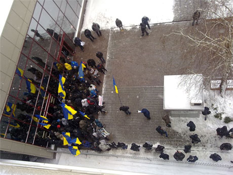 Представництво ЄС в Україні заблокували молодики характерної зовнішності, яких називають «тітушками».