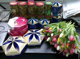 Квіти і цукерки - безумовні лідери подарунків жінкам до 8 Березня. До трійки лідерів також увійшла недорога сувенірна продукція: ручки, статуетки, рамочки для фотографій. Набагато рідше дарують просто листівки і майже ніколи - гроші. Співробітницям також дарують подарункові сертифікати, косметику, духи, шампанське або інше спиртне, квитки в кіно, на концерт, в театр або навіть на іподром, влаштовують корпоративи, шоу, вистави, сюрпризи. Особливо «просунуті» чоловіки самостійно готують пригощання для жінок.