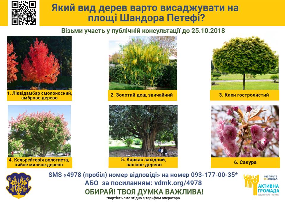 Сьогодні та завтра, 25 жовтня, в Ужгороді триває четверта публічна консультація: які дерева садити на пішохідній частині площі Шандора Петефі.