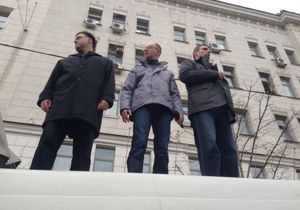 Арсеній Яценюк, Віталій Кличко та Олег Тягнибок виступають на мітингу в Харкові з даху мікроавтобуса, – повідомляє Кореспондент.