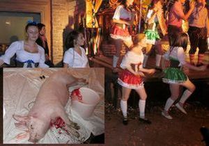 На підтвердження своїх слів він продемонстрував кілька фото, зроблених під час шоу заколювання свині в ресторані Старгород.