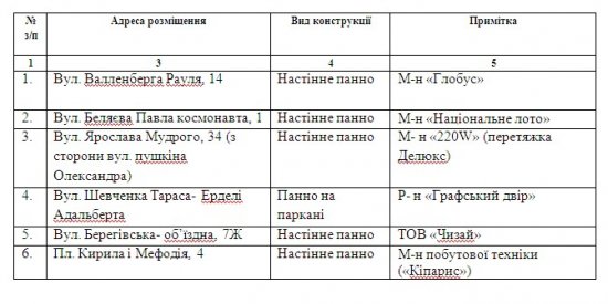 Таке рішення прийнято засіданні виконавчого комітету. Доручено фахівцям ММКП “Ремонтно будівельне управління” провести демонтаж спеціальних рекламних конструкцій, які встановлені без відповідного дозволу у п’ятиденний термін з моменту прийняття рішення.