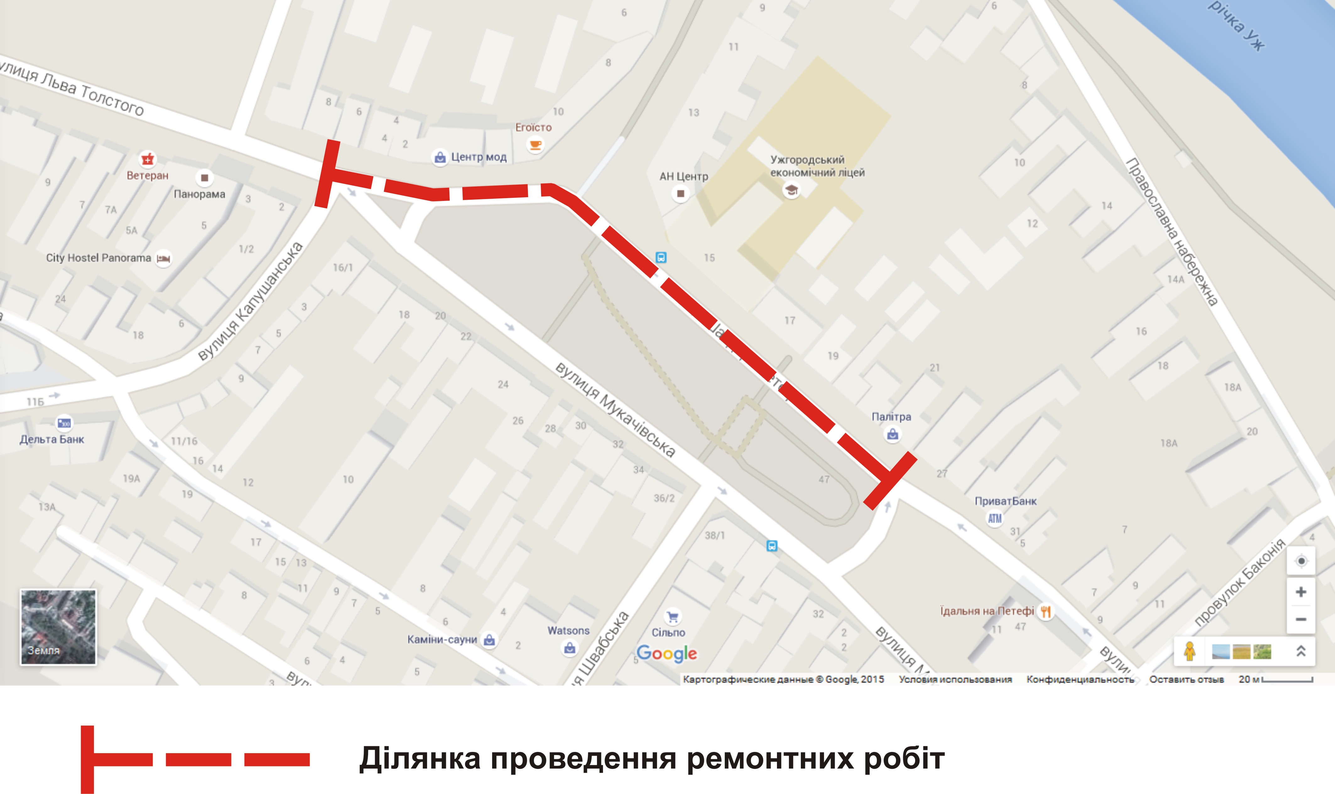 З 3 по 7 листопада 2015 року проводитиметься капітальний ремонт дорожнього покриття на пл. Ш.Петефі (від будинку «Побуту» до магазина «Фокстрот» зі сторони ЗОШ №9).