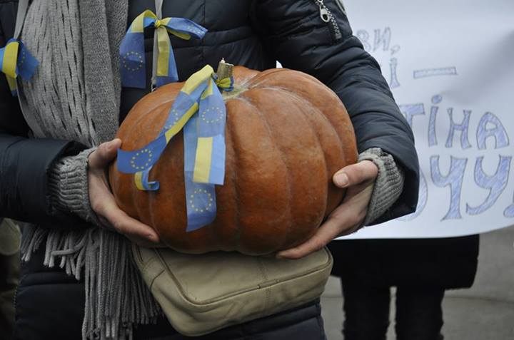 Сьогодні, 17 грудня, українські дівчата піднесли Президентові РФ Володимиру Путіну гарбуза. Близько 50 дівчат провели пікетування Посольства РФ, заспівали там народних пісень та залишили там свою однозначну відмову вступати до Митного Союзу - гарбуз, об'вязаний єврострічками.