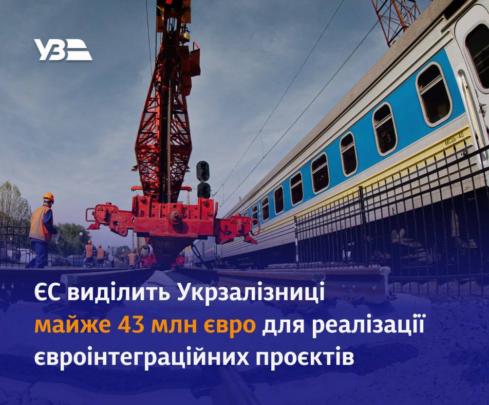 ЄС виділить Укрзалізниці майже 43 мільйони євро для реалізації євроінтеграційних проєктів.