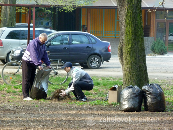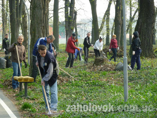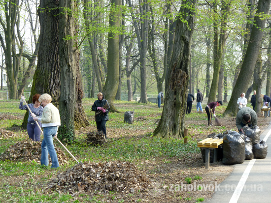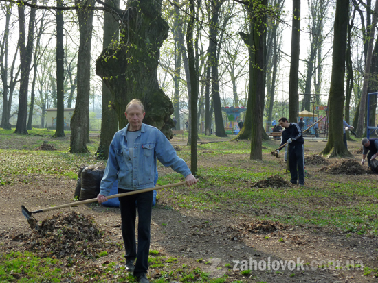 Парк "Підзамок" теж прибирали кілька десяткі людей. Сюди прибули працівники Ужгородської міської ради. Вони згрібали старе листя та пакували у пакети, складали на купи обрізані гілки дерев. Мера видно не було, зате приїхала керуюча справами міськвиконкому Даніелла Геворкян.