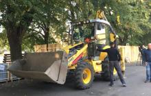 На набережній Незалежності лиш почали встановлювати щити, але вже покалічили одне дерево липи.