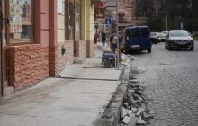 Сьогодні в Ужгороді продовжується капітальний ремонт тротуарів на площі Корятовича та на вулиці Марії Заньковецької.