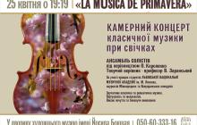 У камерному, класичному концерті при свічках "Музика весни", вперше в Ужгороді, звучатимуть музичні твори у виконанні камерного ансамблю солісток, лауреатів Міжнародних та Всеукранськиx конкурсів.