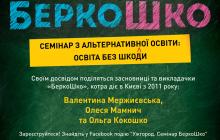 6 лютого в Ужгороді відбудеться семінар з альтернативної освіти «Освіта без школи (шкоди)», який триватиме з 12 до 16 години у новій школі Лінгвістичного центру «ЛІК», по вул. Минайській, 5а. Своїм досвідом поділяться співзасновниці київської «БеркоШко» – Валентина Мержиєвська, Олеся Мамнич та Ольга Кокошко.