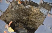 На площі Корятовича, 2 (біля книгарні Кобзар) просто серед проїжджої частини - утворилася вирва.