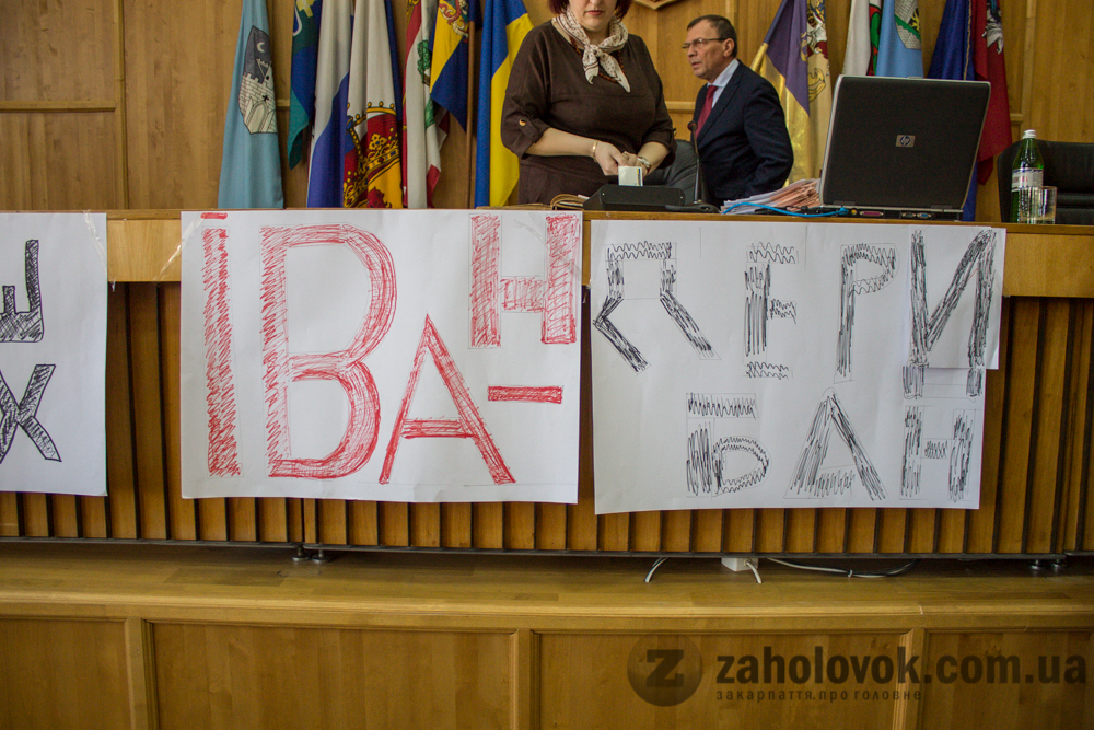 На самому початку сесії слово отримав активіст Юрій Світлик. Він повідомив, що Громадський конвент ініціює громадські слухання на тему приватизації комунального майна. Саме тому попросив мера знати питання по приватизації комунального майна та по приватизації земельної ділянки. Це прохання Віктор Погорєлов погодився задовольнити. Так більшість депутатів проголосували за зняття відповідних проектів 1655 i 1687 з порядку денного.