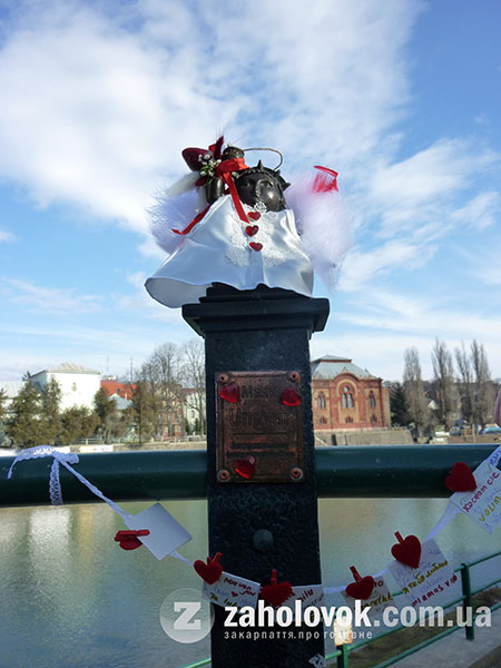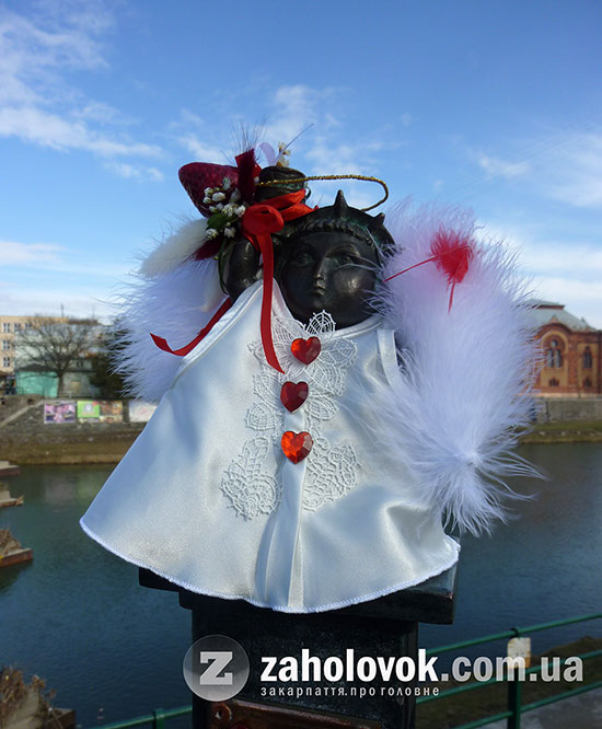 Сьогодні ,14 лютого, ужгородська міні-скульптурка маяк Свободка отримала перше у цьому році тематичне вбрання. «Дівчина» постала в образі ангелика до Дня всіх закоханих. Свободці начепили крила з пуху лебедя, вручили традиційний букет, цього разу з полуничкою посередині, а також спорудили над головою німб. Образ ангела вже був задіяний минулого року у серії перевтілень Свободки.