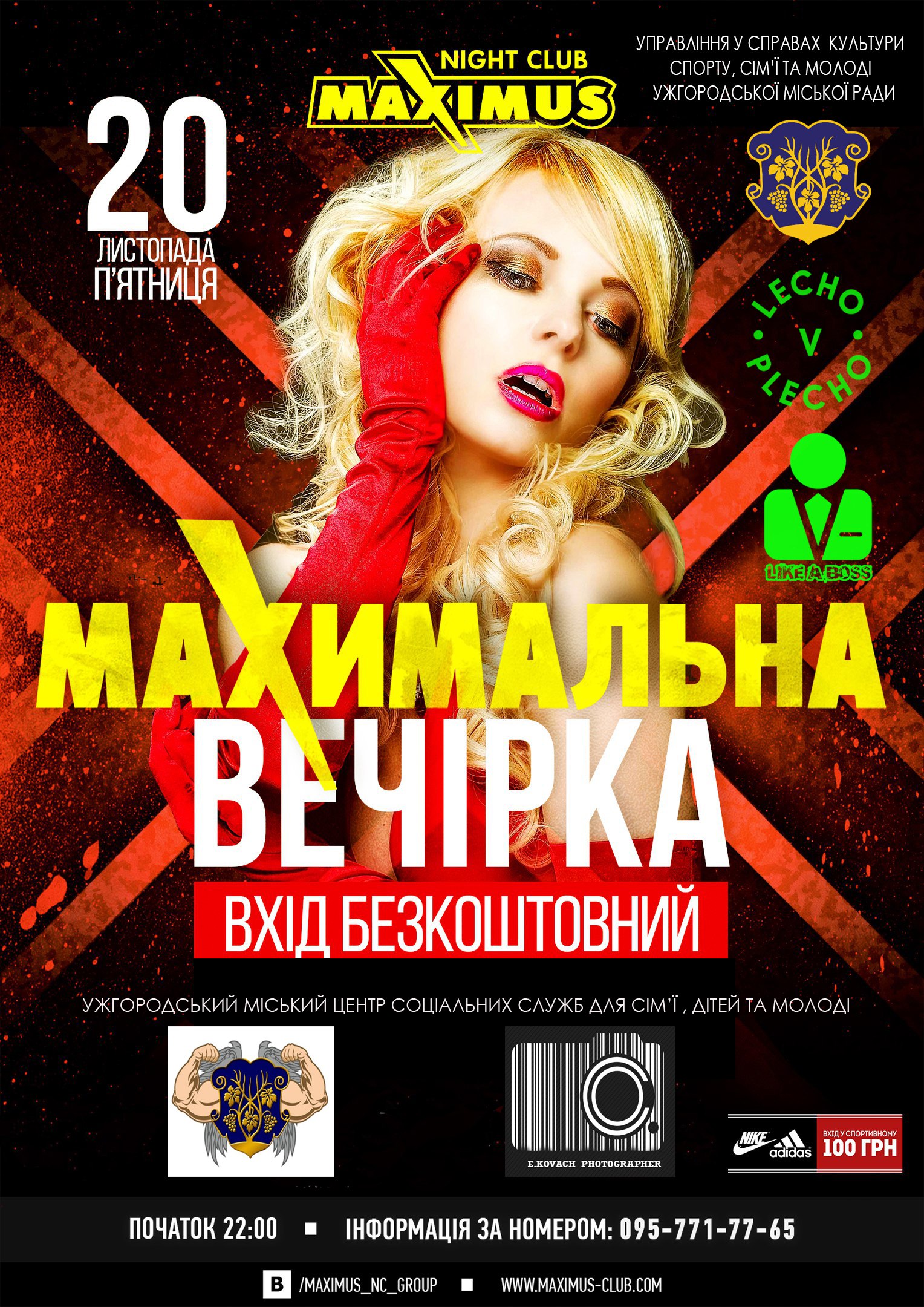 Захід відбудеться за підтримки організаці" Street Workout Uzhgorod" - 20 листопада/ START 22:00/ Night club MAXIMUS.
