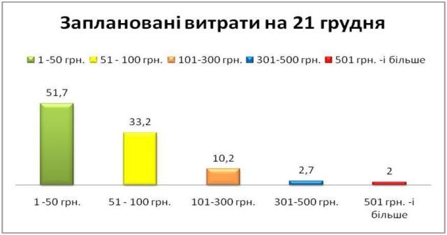 Свої фінансові витрати ужгородці ніяк не прив’язують до кінця світу: 51, 7 % опитаних зазначило, що їхні витрати становитимуть від 1 до 50 грн., в 33, 2 % - витрати будуть в проміжку від 51 до 100 грн., 10,2 % ужгородців в п’ятницю планують витратити від 101 до 300 грн., для 2,7 % мешканців міста вже заплановані витрати від 301 до 500 грн., 2 % опитаних витратять від 501 грн. і більше. Респонденти, які вірять в можливість кінця світу 21 грудня 2012 року не робили жодних дій, щоб підготуватися до Апокаліпсису та не витрачали на це гроші.