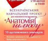 Олексій Руденко, спікер проекту «Анатомія шлюбу» додав: «У навчальних закладах викладають різні предмети, проте нам не вистачає знань про сім’ю, щоб збудувати її міцною і щасливою. До нас приєдналися люди, які зацікавлені, щоб у нашому місті було менше розлучень і було більше щасливих сімей». Заняття включають і психологічні теми, і «практичні». Розглядають відмінності у психології жінок і чоловіків, ролі партнерів у шлюбі, сімейний бюджет вирішення суперечок та інші цікаві теми. Одна з головних тем, що пронизує усі заняття – сімейні цінності.