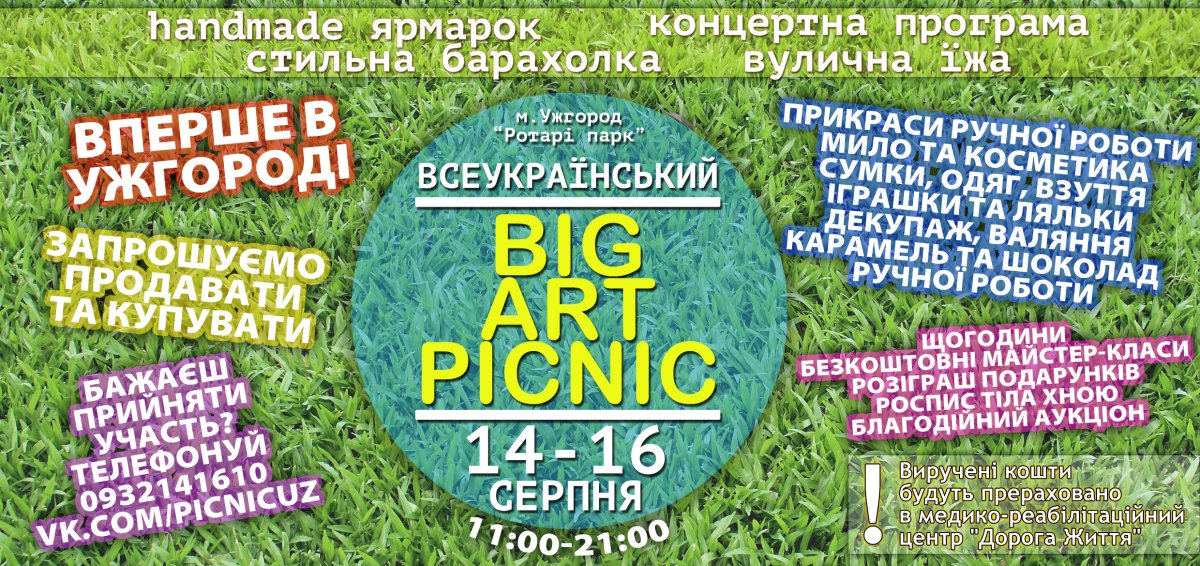 Вже зовсім скоро - 14-16 серпня веселе та доброзичливе місто Ужгород прийме у себе один з наймасштабніших заходів літнього сезону - "BIG ART-PICNIC".