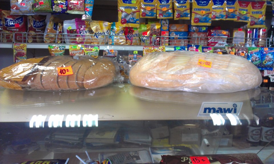 «25.03.2013, 15.00, Центральний вокзал м.Києва. На питання «Чому хліб коштує 10 грн?» продавчиня посміхнулася і сказала «Патамушо хліба ніде нема». Завіса», - написала дівчина.