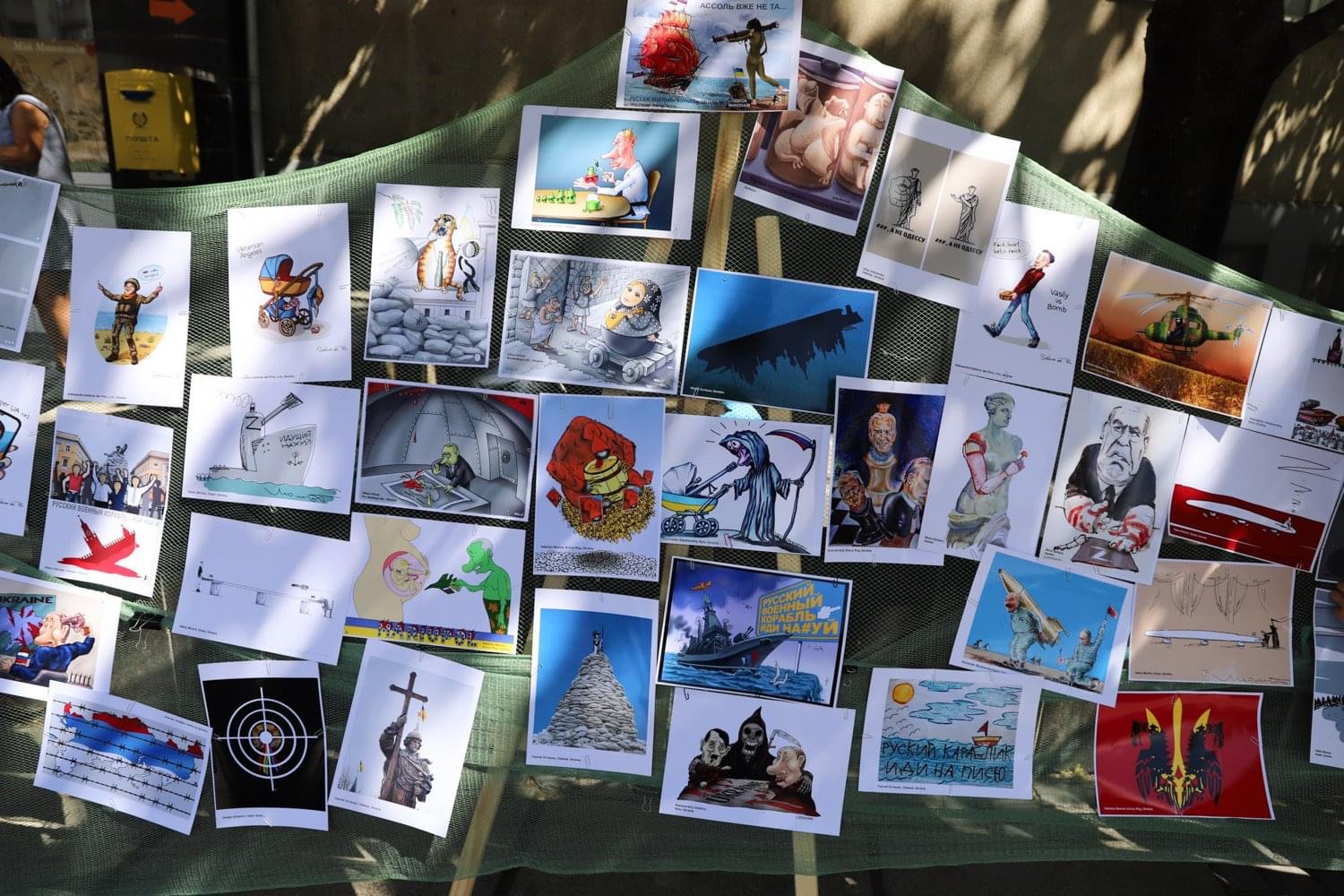 Якщо казати про виставку політичних та антивоєнних карикатур, то в експозиції – понад 300 робіт авторів із України, Ізраїлю, Польщі, Греції, Німеччини, Румунії, Індії, Італії, Швеції, Нідерландів, Франції, Австрії, Мексики та інших країн. За словами організаторів, захід має за мету привернути додаткову увагу суспільства до проблематики війни та її наслідків через гумор, висміювання ворога. Кожна карикатура по-своєму висвітлює обличчя диктатора-параноїка, брехливість російської пропаганди та відсутність моральності у російських окупантів.