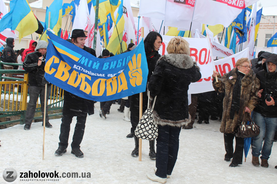 Сьогодні, 15 березня, в Ужгороді під час мітингу об’єднаної опозиції «Україно, вставай!» представники «Батьківщини» та «Свободи» сварилися між собою, хто буде йти першим під час маршу від площі Театральної до Народної.