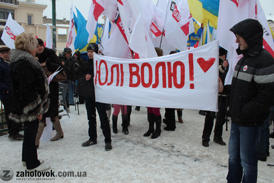 Близько 16.00 на центральній площі Ужгорода почала формуватися колона для мітингової ходи по місту. Спочатку колону очолили прихильники «Батьківщини», які приїхали з Рахівщини. Керувала ними вчителька. Плакат з написом «Юлі – волю!» тримали 15-річні хлопчаки. Далі за ними – дівчата з прапорами «Батьківщини». Жінка пояснювала по телефону, що «дівчата красиві, хочуть бути на початку».