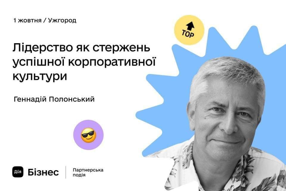 У п’ятницю, 1 жовтня, у Центрі підтримки підприємців Дія.Бізнес відбудеться зустрічі із Геннадієм Полонським, доктором економічних наук, професором англійської школи бізнесу, відомим консультантом із управління та особистісного розвитку. Тема зустрічі – «Лідерство як стержень успішної корпоративної культури».