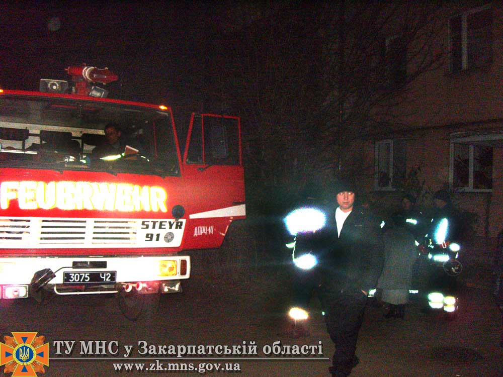На місце події прибули 2 відділення рятувальників 14-ї державної пожежно-рятувальної частини Територіального управління МНС у Закарпатській області. На цей момент вогонь вже охопив приміщення кухні. Вогнеборці на чолі з начальником караула Іваном Бонгаром, під час гасіння пожежі, врятували 4 дітей (2007-2003 років народження), а також евакуювали 5 дорослих з сусідніх квартир.