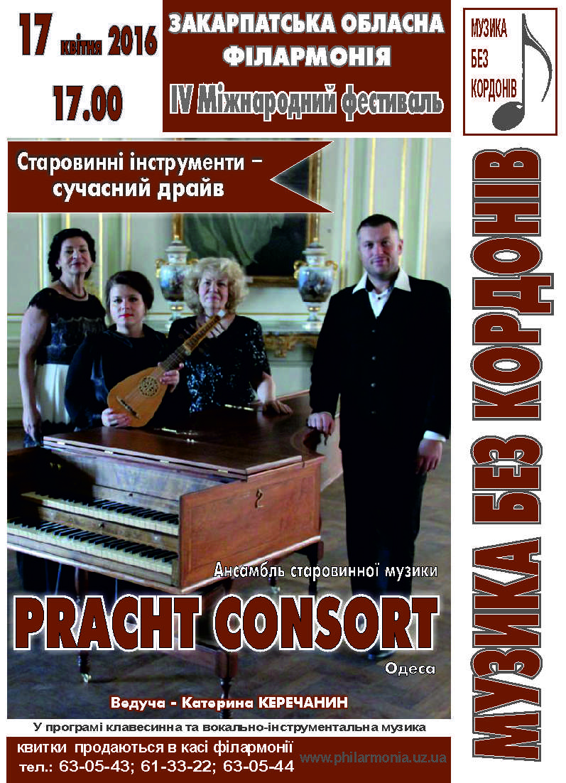 Концерт відбудеться 17 квітня, початок о 17.00. Виступатиме ансамбль старовинної музики "PRACHT CONSORT".