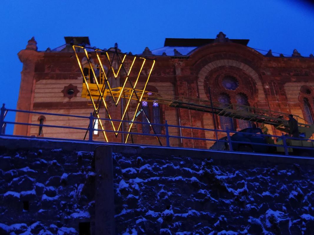 В Ужгороді біля обласної філармонії (колишньої синагоги) ввечері, 25 грудня, з нагоди єврейського свята Хануки відбулася урочиста церемонія запалювання менори.