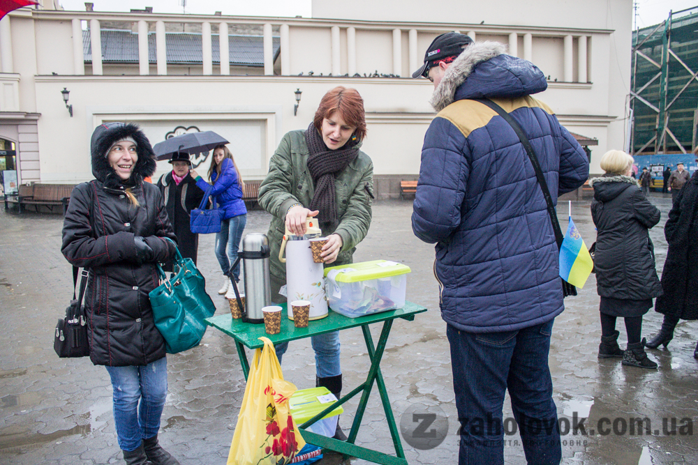 До слова, ще на старті акції на площі Театральній волонтери продавали особливий трав'яний чай у липи, м'яти, меду та імбиру. Назвали його по-святковому "В єдності — сила" і продавали за символічну ціну.
