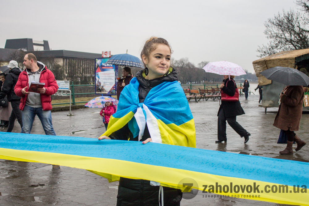22 січня громадські організації міста Ужгород вирішили об'єднатися для проведення живого ланцюга, яким би з'єднали обидва боки річки Уж. Кількість учасників виявилася врешті настільки великою, що люди зайняли цілий транспортний міст. Бо ж саме через нього вирушили до пам'ятника Тарасу Шевченку.