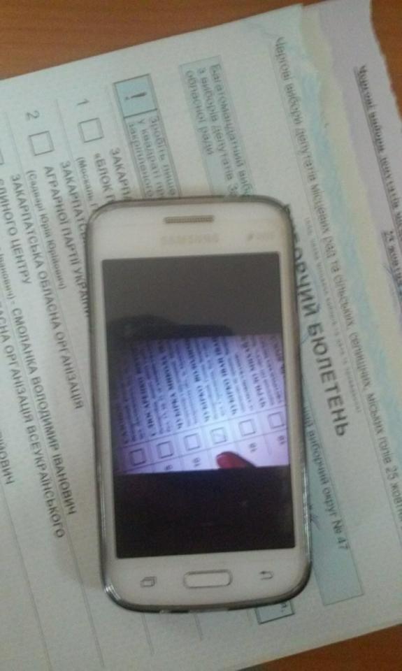 "На ДВК #210715 виявленно перше порушення. Дівчина сфотографувала бюлетень. Обраний нею кандидат - самовисуванець Чубірко Володимир Володимирович", - йдеться у повідомленні.