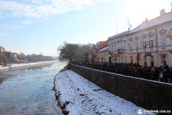 Святити воду на Уж прийшли кілька тисяч ужгородців. Владика Феодор звернувся до вірників із проповіддю, подякував усім за участь у службі, привітав зі святом, а потім пожартував, що мукачівці «жаліються», що архієпископ кожного року на Водохреща їде в Ужгород, «а міг би й на Латориці воду святити» і сказав, що пообіді і в Мукачеві буде водосвятний молебень на набережній.