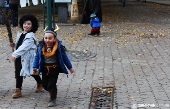На площі збираються діти у відповідних «хелоуїнських» нарядах: скоро на площі проведуть конкурс на кращий костюм.