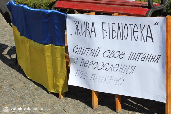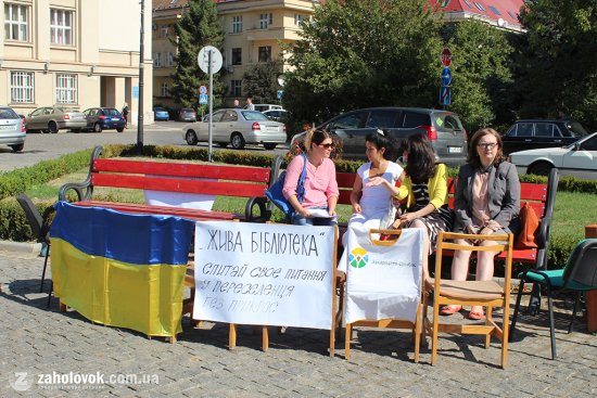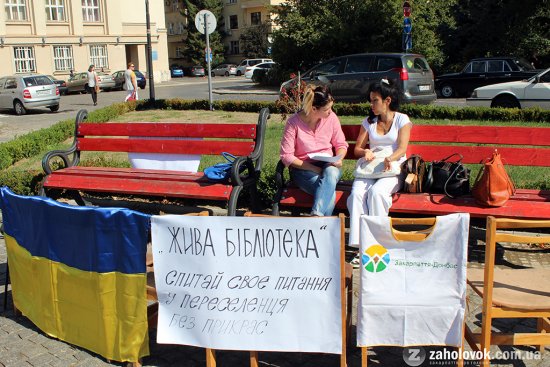 Сьогодні, 21 вересня, на площі Народній в Ужгороді відбулася акція «Жива бібліотека»: усі охочі мали можливість задати питання переселенцям зі Сходу України, які зараз живуть на Закарпатті.