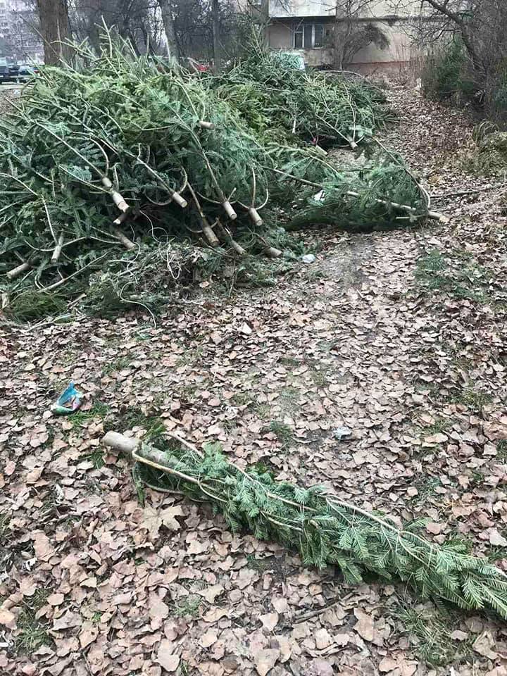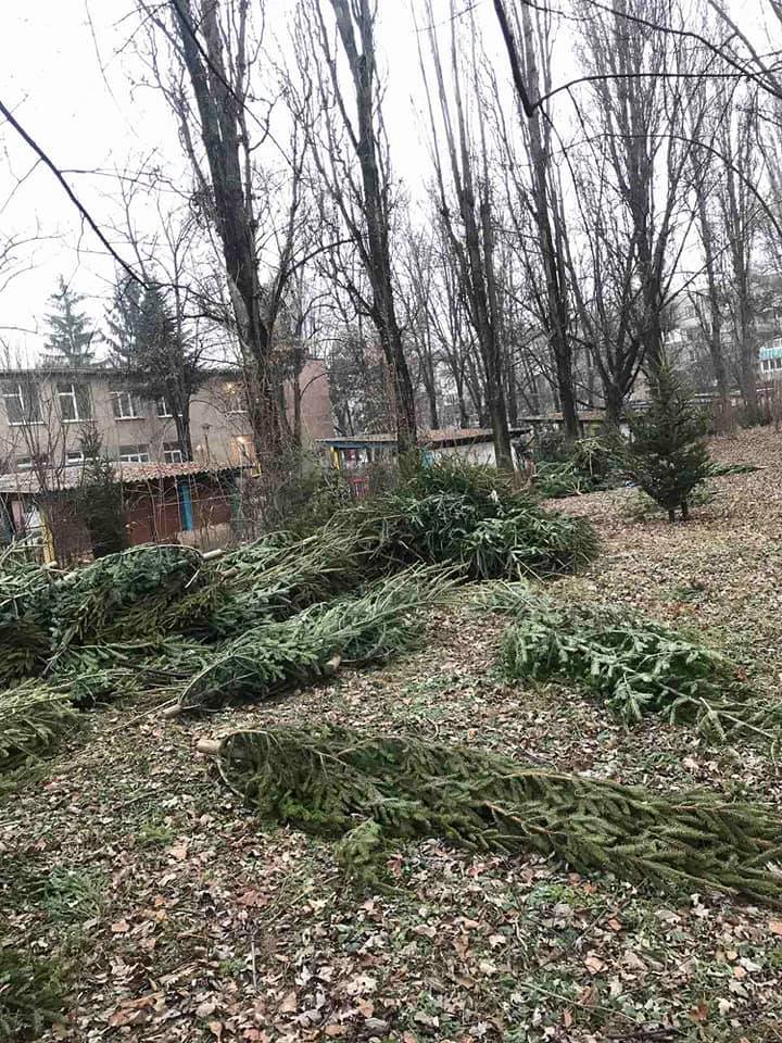 Так, користувачка Вікторія Олашин повідомила про те, що в обласному центрі Закарпаття неподалік дитячого садочку № 29 розкидані ялинки, ймовірно, які не розпродали напередодні Нового Року.