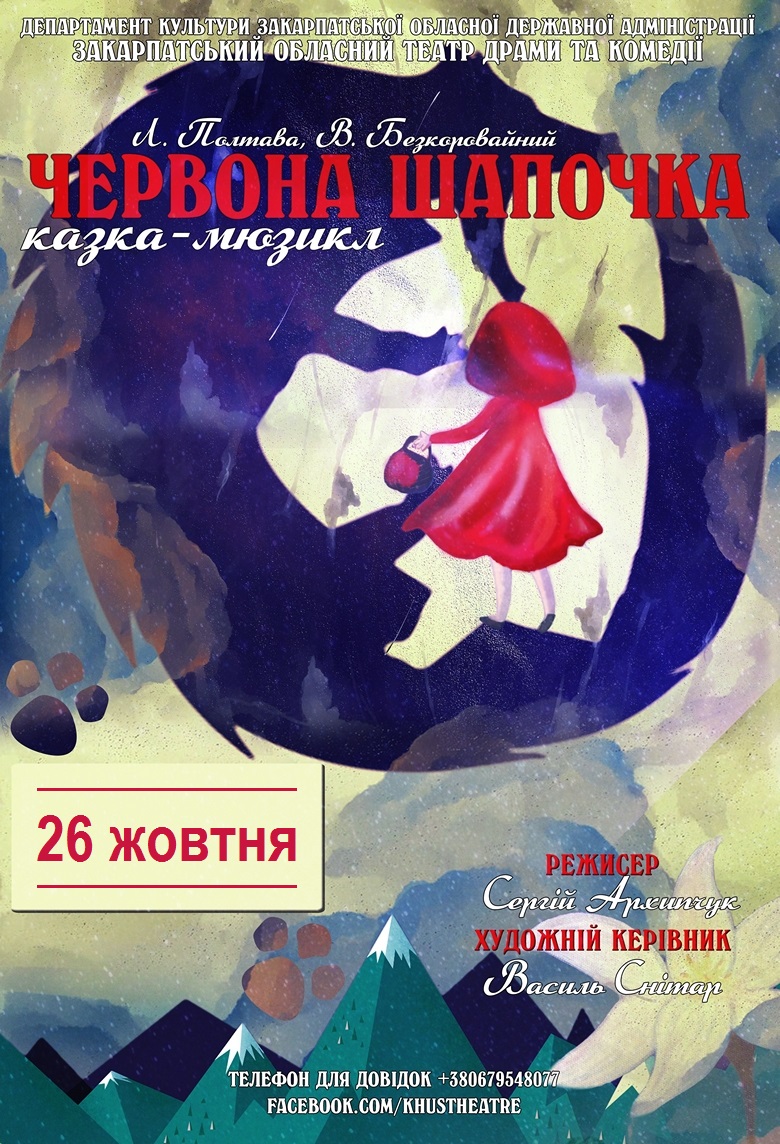 Цього разу колектив порадує прем'єрою маленьких глядачів: дитячу виставу "Червона Шапочка", перший показ якої днями вже відбувся на хустській сцені, зараз зіграють у залі Закарпатського академічного обласного театру ляльок (м.Ужгород, пл.Театральна, 8).