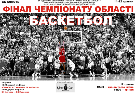 За підтримки Департаменту освіти і науки, молоді та спорту Закарпатської обласної державної адміністрації та Закарпатської обласної федерації баскетболу у спортивному комплексі «Юність» 11-12 травня відбудутся півфінальні та фінальні ігри чемпіонату області з баскетболу.