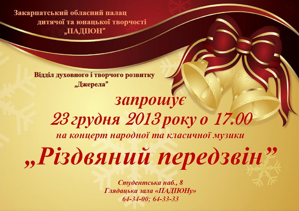 Сьогодні, 23 грудня, у Закарпатському обласному палаці дитячої та юнацької творчості «ПАДІЮН» відбудеться різдвяний концерт.